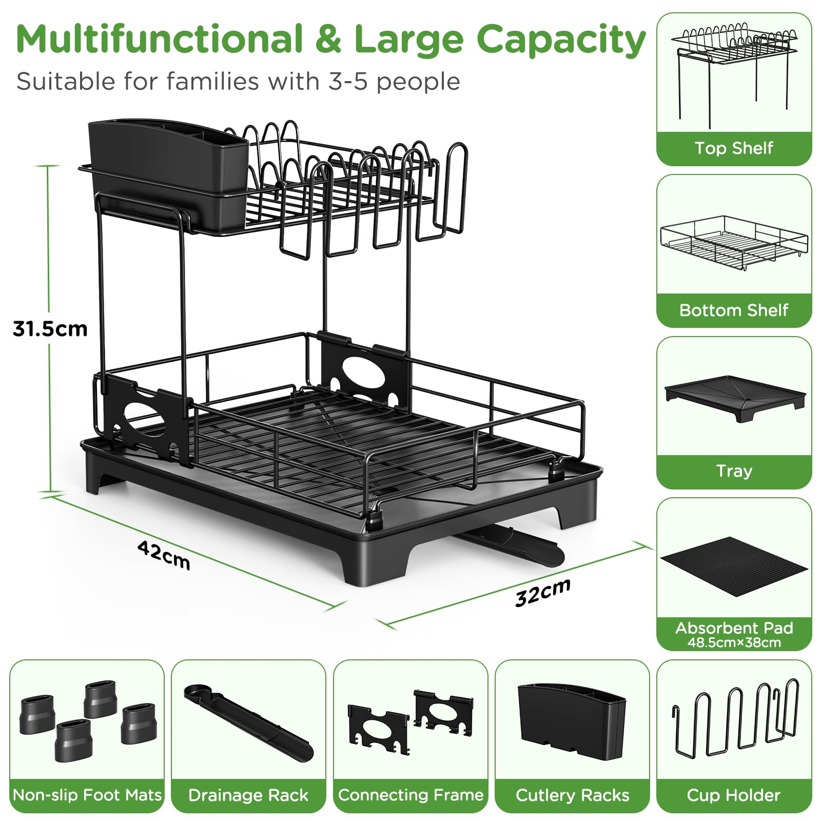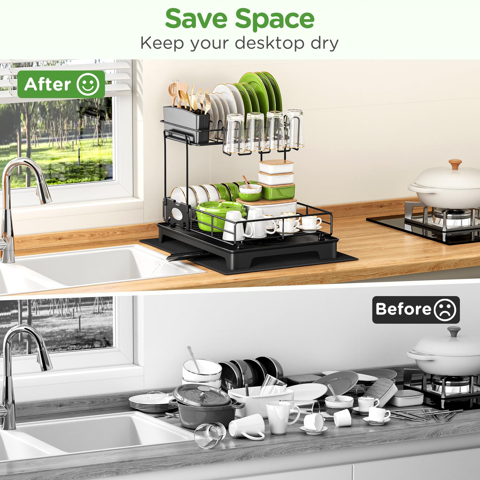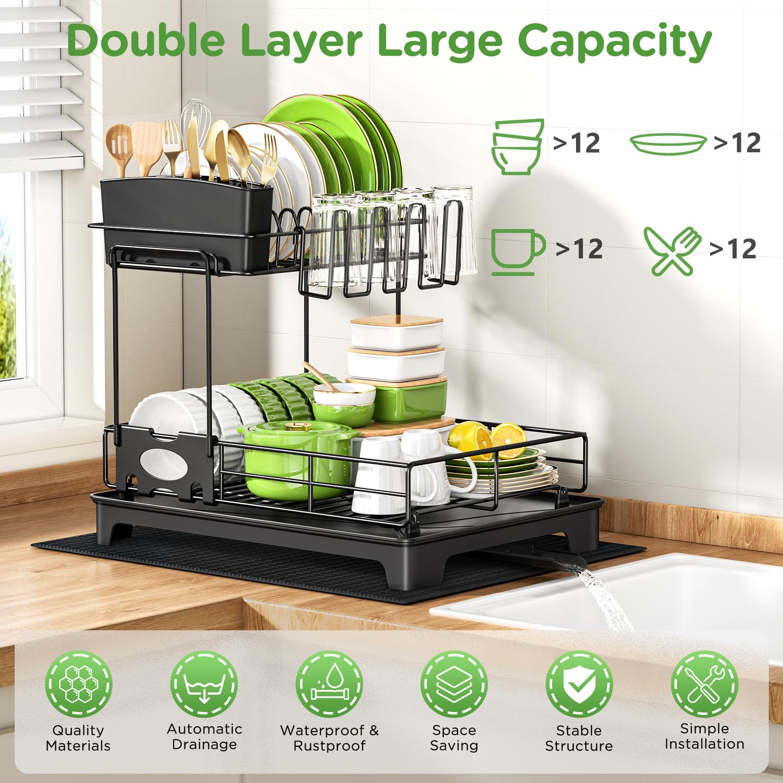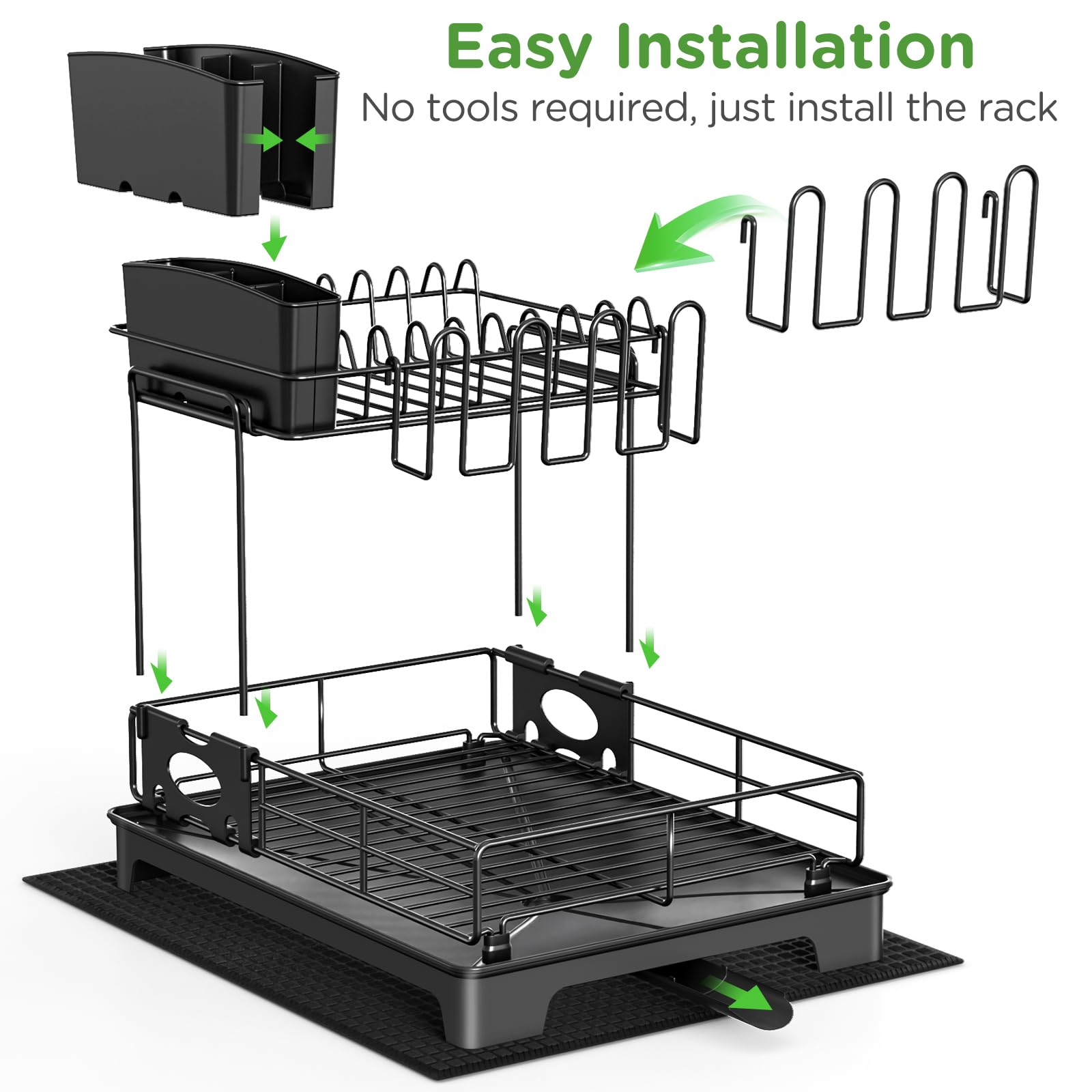 • 【Installation sans outil】Cet égouttoir vaisselle inox ne nécessite aucun outil et s’installe très rapidement et facilement. Il peut maximiser le stockage de toutes sortes de plats dans l’espace le plus réduit, avec une capacité de charge de plus de 50kg(110 livres), la conception épaissie du châssis d’égouttage est plus stable, ce qui assure une longue période de stabilité sans rupture et sans oscillation.